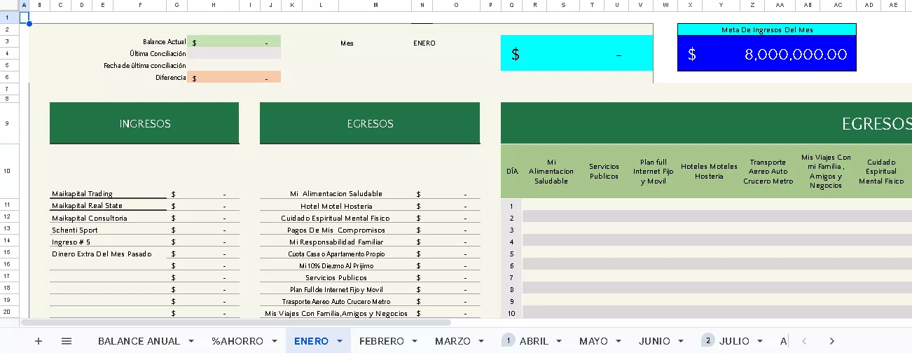 Organiza tus finanzas con una plantilla fácil de usar. ¡Mantén tus ingresos y gastos bajo control y evita sorpresas desagradables!